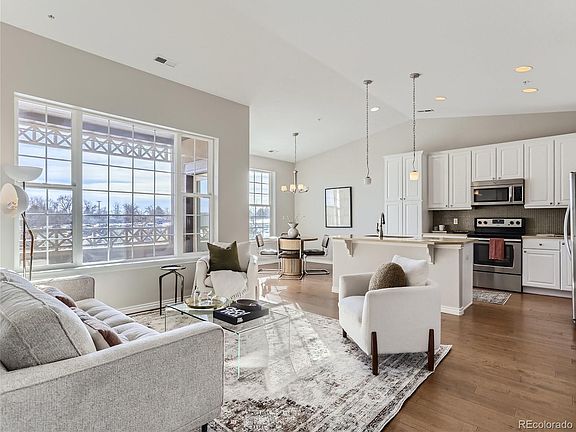 Welcome home to the highly sought after Dancing Willows Community! This second floor end unit has a balcony that overlooks open space! Brand new interior paint throughout! Enter from the garage or front door into your private stairway that takes you to the living area upstairs. At the top of the stairs, you will find an office space! Walk into the light and bright open floor plan with many windows that let in natural light overlooking open space! Vaulted ceilings! Gorgeous pre engineered hardwoods! The kitchen has freshly painted cabinetry with brand new hardware, a large island that can accommodate seating, stainless steel appliances and plenty of countertop space! Enjoy the large dining space that can accommodate your favorite table! The living room has a stylish gas fireplace and built-ins! A covered patio, just off the living room, offers an outdoor area to relax and enjoy beautiful Colorado