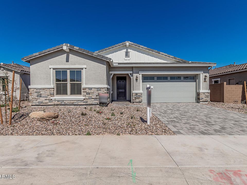 Discover this impressive Celeste home, ready for quick move-in! Included features: a covered entry; a spacious study; a gourmet kitchen boasting 42'' cabinets, quartz countertops, stainless-steel appliances, a center island and a generous walk-in pantry; an inviting nook with center-meet patio doors; an elegant great room; a secluded primary suite offering an oversized walk-in closet and a private bath with double sinks; three secondary bedrooms; two additional baths; a central laundry and a relaxing covered patio. This home also showcases dramatic 10' ceilings, wood laminate flooring, cultured marble bath countertops, ceiling fan prewiring and extra windows in select rooms, front yard landscaping and concrete pavers at the walkway and driveway.