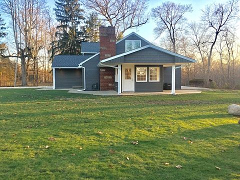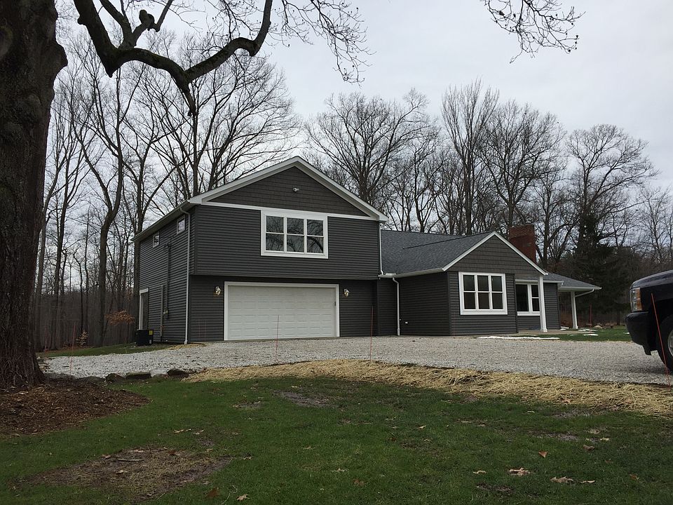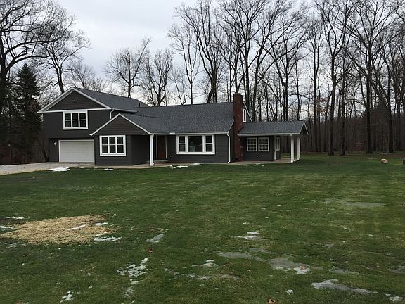 Completely custom remodeled home on 6+ acres. Open floor plan. First floor laundry room. New septic, vinyl siding, asphalt shingle roof, dual gas furnace & central air conditioning units, garage floor, hardwood first floor, custom granite counter tops in kitchen and bathrooms. All kitchen appliances included. Tile flooring and walls in bathrooms & showers. Master bedrooms - downstairs and upstairs. New cabinets w/ slow- close doors & drawers. LED lighting throughout. Beautiful views out of all the new double pane, energy efficient windows. New paint on all walls & ceilings. New carpeting upstairs, staircases and basement. Solid core interior doors. Patio surrounds foundation with 2 covered patios. One of a kind family home on a beautiful double lot that has wooded and open spaces. Open house February 18 & 19 from 1:00 to 3:00pm.