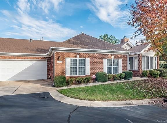 Excellent location between Stonecrest and Blakeney, Shops & Restaurants! Private & Treed cul-de-sac location, Easy 1 level Living- flat cul-de-sac, driveway and garage-with direct entry to home. Light and bright w/much natural lighting. Vaulted Great Rm w/Fireplace opening to lovely Sun Room. Spacious Kitchen w/white cabinets, Breakfast area. separate Dining Area, Office/Den. Spacious Master Suite with Trey ceiling, Large Walk in Closet-plus spacious Bath w/walk-in shower. Second BR, Full Bath w/Tub/Shower combo. Immediate occupancy available- complete package w/Fridge, Washer and Dryer incl. Bonus! Porch furniture and garage cabinets to remain! Blinds & Ceiling Fans thru-out, Laminate flooring in GR/DR/Kit. Neutral Decor. Storage in Attic. Active HOA. Community Clubhouse, Pool, Library & Fitness Center. 4+ Yr Home warranty for Buyer!