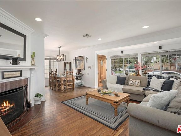 Welcome to this super sweet 1942 traditional with great curb appeal located in a quaint pocket of Valley Village. This leafy urban oasis is flanked with mature lush landscaping, white vinyl fencing, darling front porch and a covered back patio. The interior radiates warmth and charm featuring crown moldings, smooth ceilings, fireplace, hardwood floors, and tile. The kitchen features granite counter tops, stainless steel appliances, farm sink and breakfast nook. The cozy primary bedroom with ensuite overlooks backyard greenery. There are 2 additional nice sized bedrooms and bath to round out the interior. (3rd bedroom currently set up as an office/den). The long driveway is suitable for parking multiple cars, and behind the vinyl fencing you will find a detached 2 car garage with a grassy backyard perfect for entertaining. (Detached garage might have the possibility of an ADU buyer to investigate) Centrally located with access to transportation, freeways, Noho West Mall, Trader Joes, Movies and Restaurants.