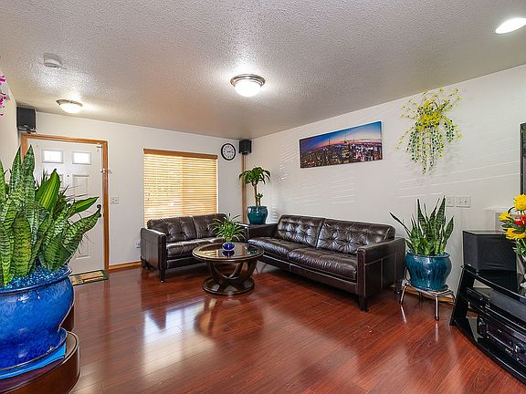 Beautifully upgraded home with extensive laminate wood flooring and tile floors in all baths. Well maintained, 4 bedrooms and 2.1 baths. Living room with fireplace. Kitchen with granite counter top and backsplash, tile floor and nook with sliding door to the patio. Master with walk-in closet and full bath with skylight. Convenient location, walk to bus stop, in the David Douglas high school district. Central heating and AC. HOA $25 monthly.