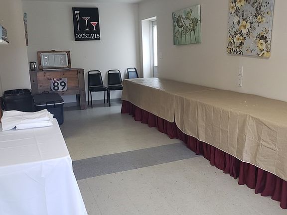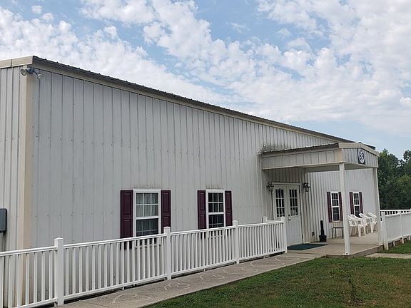 Great Opportunity! A 2,400 Sq Ft building built as a church with a large open area in the center with rooms and 2 1/2 baths on the sides. In great condition; currently being used as a Venue rental for receptions, reunions, meetings, etc. Also a separate covered pavilion with tables and a firepit/conversation area...Plenty of room for parking or additions.