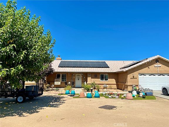 Welcome home to this Gorgeous 3bed/2bath home complete with 2 Driveways, a HUGE Covered PATIO and PAID SOLAR. Driving up to the property, you'll notice the TWO separate DRIVEWAYS and entrances along with RV Access on both sides of property. As you enter the home you'll immediately notice the Rock Fireplace and Open Floorplan. Kitchen is beautiful with plenty of Cabinet space and kitchen ISLAND space complete with Granite Counters. TILE flooring throughout home, Indoor LAUNDRY ROOM with its own counter and storage space. Split floorpan so Primary Suite is on the opposite side of the 2 other bedrooms. Every bedroom has a WALK-IN closet. Both bathubs are big and very ROOMY. Patio is Covered and covers the entire length of the home. You don't want to miss out on this beauty!
