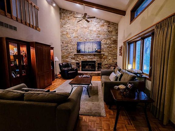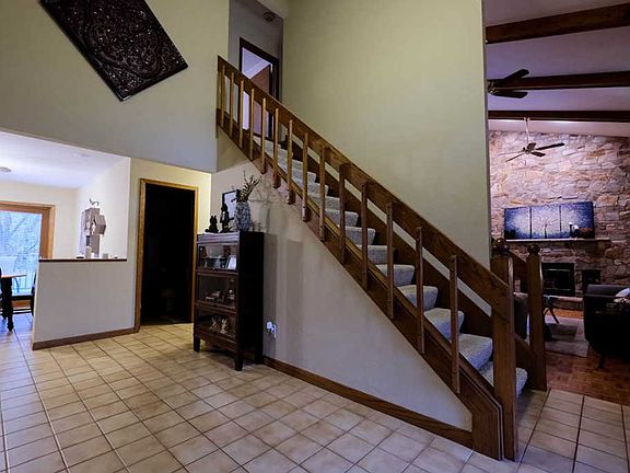 Must See!! This 5 br house is located on a beautiful wooded lot w/lg deck overlooking private backyard w/many mature oak trees, 3 varieties apple trees, peach tree & garden plot! Walk into lg foyer w/staircase leading to loft that overlooks bright, great room boasting floor to ceiling stone fireplace. Also features 1st floor master bedroom w/custom closet & full bathroom, formal dining rm, lg kitchen with an abundance of cabinets, island w/elec stove top, & large eat-in kitchen space! Marvelous LL roughed in for a bath, w/family rm, rec rm and full walkout to patio. Circle drive w/ additional parking pad. Very low heating & cooling bills, new water heater 2016. Bring your buyers!