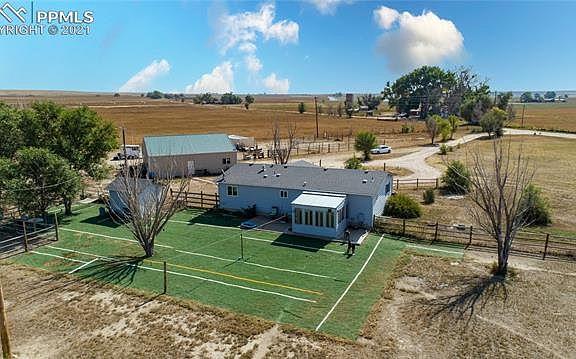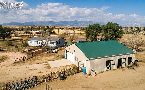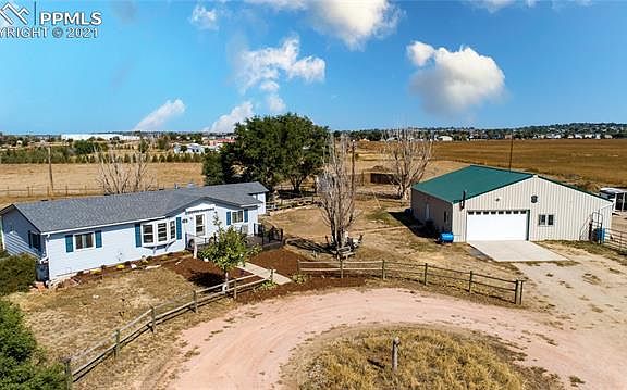 Need some space, but not quite ready to give up your city life? This is the perfect place for you. This beautiful home sits on five and a half acres and is far enough away that you'll enjoy living in the country, but close enough that you can visit the city (an easy 20 minutes to downtown Colorado Springs) as often as you need/want. The home itself has been lovingly remodeled. From the outside you'll notice newer steel siding, roof and windows (2016 ish). Enjoy the open concept between the living room, dining room and kitchen. The kitchen boasts a farm sink, gas stove, breakfast bar and the wood look ceramic tile. The master bedroom features not only a walk in closet but also an additional full sized closet and an attached bath. Two more bedrooms and an additional bath conveniently located at the opposite end of the home from the master round this cute place out. The property is currently home to five amazing dogs, four awesome horses, and a handful of chickens, indicating that your furry/feathered friends will also love calling this place home. (The chickens can stay if you'd like.) Check out the "Barnage" (barn/garage combo) at a jumbo 40'x40'. (roughly 26x30 garage, 26x10 shop and 40x14 horse stalls and barn.) The barn has a water spigot and 3 stalls. The garage has a wood burning stove to keep you toasty when working on projects. You'll also find a loafing shed; a chicken coop that has power, and two storage sheds also with power (and one even has a skylight and loft.) The horses have roughly half the property fenced for their roaming. With the option of irrigating an acre, you can even grow alfalfa, if you want. There are several places for gardens and room for trampolines, swing sets, green houses, etc. Let your imagination run wild. Once you've viewed this astounding property, we're sure you'll want to make it yours. Don't let this one pass you by. You're going to love it here!