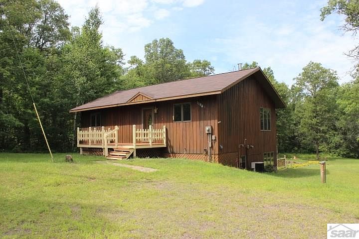 This lovely home is move in ready! Everything is freshly painted, all new floor coverings , etc. When you walk in you would think this was brand new. Externally it has a new roof, some newer windows and is freshly stained. The walkout basement features a spacious family room that leads to a spacious backyard patio. There are two bedrooms and full bath on main level and the lower level has a full bath and one bedroom plus a guest room. There are two good sized storage sheds and the wooded acreage has a nice trail leading to the back of the property. The front yard has some nice trees that give ample privacy. Long Lake Rd is blacktop and dead ends in the Douglas County forest just beyond this property. Beautiful golf course is less than 2 miles away. Very quiet location.