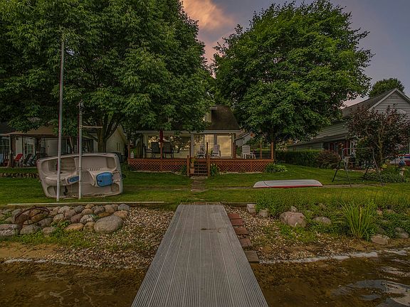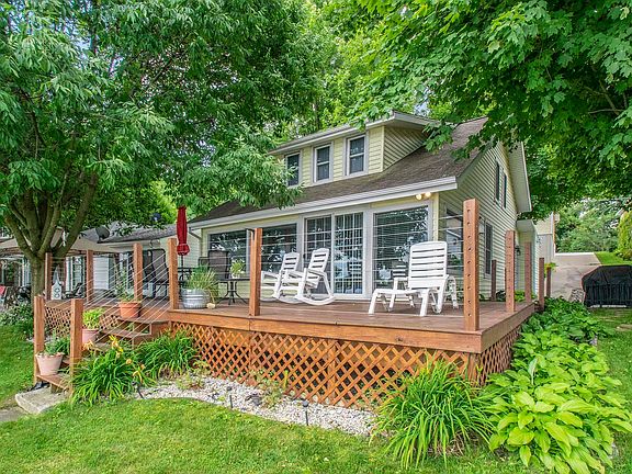 Wow, meticulously maintained year round historic cottage with 46’ of frontage on Stone Lake. This property is just north of Middlebury. This quaint cottage features 3 bedrooms and 2 full baths, and beautiful views of the lake. The cozy main floor invites you in with its plaid painted walls, hard wood floors, fireplace and exposed ceiling. The primary bedroom has an ensuite bathroom and patio door to the exterior to enjoy your coffee first thing in the morning. Large picture windows look out onto the lake and a large 5 year old deck for outdoor entertaining. No steps, main floor bedroom, bath and ramp to the front deck allows for ADA access to the entire first floor. Upstairs features 2 large bedrooms with hardwood floors, walk in closets and the second bathroom including a large soaker tub. The home does come furnished excluding several items listed in the associated documents. All guests are welcome with the capability of sleeping 10 people. Large 2 stall garage and extra large heated shed add storage and could be used as a workshop. Endless opportunities on this lakefront treasure.