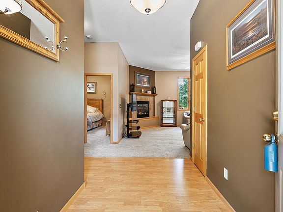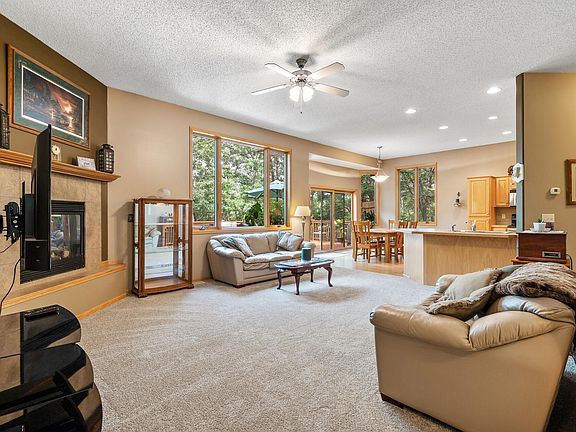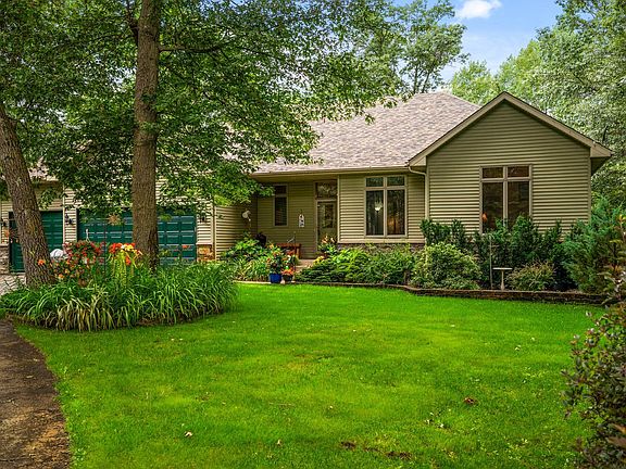 Check out this walkout rambler nestled on 5.5 private acres surrounded by beautiful mature trees and lush gardens. It offers 3 BRs, 3 BAs, an open concept floor plan, and 10 ft ceilings on the main level accented by a corner gas fireplace. Enjoy a huge family room with walkout to the backyard plus a 25 x 18 deck to take in all of nature’s endless beauty. Plenty of storage with an attached three car garage, 12 x 20 storage shed and 11 x 12 storage room inside. There is a flex room that would make for a great office, gym or playroom. The roof is only a year old. It also features new carpet, a main floor laundry, inground sprinkler system and maintenance free exterior. Great cul-de-sac location with quick and easy access to Hwy 169. More photos to follow. Schedule your showing today! You will not be disappointed!