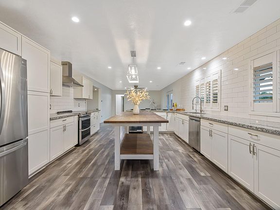 Experience the perfect blend of country charm and modern luxury in this beautifully updated home, ideally located just minutes from Highway 65 for an effortless commute. Situated on 1.38 acres, this entertainer's paradise boasts owned solar panels, a heated pool, and an all-electric setup. As you approach, you'll be greeted by a beautifully landscaped and fully fenced front yard. Inside, the home features newer paint, beautiful luxury vinyl flooring throughout, updated light fixtures, custom plantation shutters, and recessed lighting. The home offers plenty of natural light, enhancing the bright and spacious feel throughout. The stunning, large kitchen is a showpiece, featuring a spacious island, wine refrigerator, stainless steel appliances, granite countertops, a subway tile backsplash that reaches the ceiling, and a reverse osmosis system. The kitchen seamlessly connects to a generous dining and family room area, offering picturesque views of the gorgeous backyard. This split floorpan home includes three spacious bedrooms and three luxurious bathrooms. The primary suite is a luxurious retreat located off the living area, featuring walk-in closets leading to a full bathroom with a soaking tub, dual sinks, and a shower. Two additional large bedrooms are down the hall, sharing a beautifully appointed hall bathroom with a barn door, floor-to-ceiling subway tile, and a jack-and-jill vanity. A third bathroom, conveniently located near the back entrance, also features a shower. The backyard is absolutely stunning and the true highlight of this property. Perfect for summer gatherings, it features a newly renovated and re-plastered heated pool with swim outs, new tile trim, and fresh decking. The expansive covered gazebo, complete with ceiling fans, a stone fireplace, multiple stainless steel Char-Broil grills, a refrigerator, and outdoor furniture, is ideal for entertaining. The ambiance is enhanced by outdoor lighting, creating a perfect setting for evening get-togethers. There is plenty of grassy area for children to play, a large workshop for your projects, a chicken coop, and ample space for gardening.