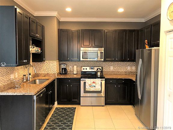 Beautiful Corner 3 bedroom 3 bathroom townhouse built in 2014 with upgraded espresso kitchen cabinets with granite countertops, tile throughout, hardwood floors in the master bedroom, crown molding, custom window shades, laundry room on the main floor, tri-level with nice size rooms, and more. There is one bedroom conveniently located on the first floor. This gated community is centrally located near the turnpike and I75. Must see!!!