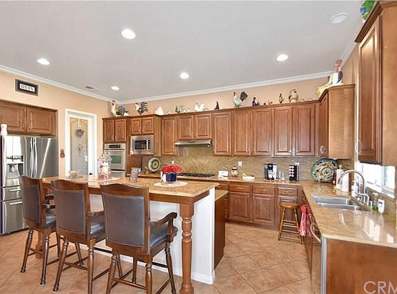 Highly Sought after Single Story home in the Desirable Bridgeport Community! This home has it all... 4 generous sized bedrooms, 2.5 baths & a Wonderful Bright Open Floor Plan. Throughout the home you'll find many upgrades to include, Upgraded AC Unit, Upgraded Water Heater, Upgraded Water Softening System, Crown Moulding, Custom Tile Flooring, Custom Paint, Upgraded Carpeting, Surround Sound Speakers throughout, Custom Wood Shutters, Mirrored Closet Doors and 6 Panel Doors. The Kitchen boasts Granite Countertops with Stainless Steel Appliances, to include a Double Oven, Dishwasher, Wine Refrigerator, Trash Compactor & Refrigerator. The Main Bedroom is complete with Separate Walk-in Shower & Custom Tile work, Soaking Bathtub, Dual Vanity & a Massive Walk-in closet with Built-in cabinets. The Indoor Laundry Area has Cabinetry & plenty of storage space. Walk outside to your Backyard, Sit back, Relax & Enjoy the Mountain Views. This Backyard offers 2 Large Covered Patios with Custom Stamped Concrete. The Spacious Backyard is flat & useable with Beautiful Built-in Planters, Large Grass Area along w/ Dog Run & Large Shed. New Vinyl Fencing offers a Beautiful clean look with Low maintenance. This space is perfect for Entertaining Family & Friends. This home has a large driveway with a Spacious 3 Car Garage, built-in cabinets & Epoxy Flooring. This property is conveniently located near Schools, Parks & Walking Trails. Don't miss this Great opportunity to own a home in this Community.
