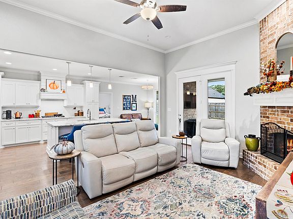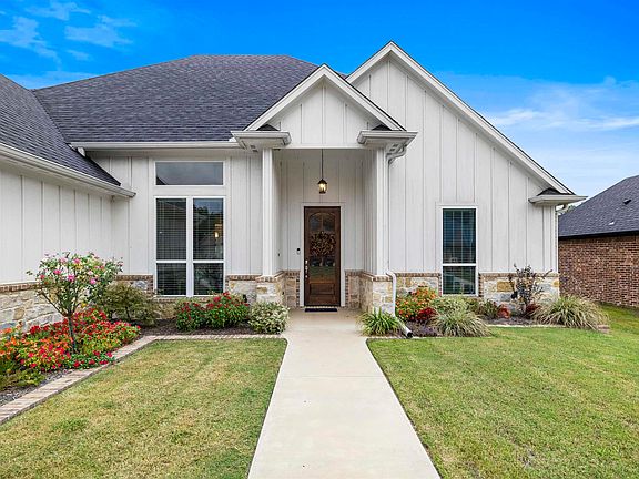 Welcome to this stunning 2023-built home, ideally situated just minutes from Fresh, top-tier shopping, dining, and right around the corner from Tyler Athletic Club. Barely lived in, this home offers the perfect blend of modern comfort and timeless elegance. Inside, you’ll find a split floor plan designed for both privacy and functionality. The home features a formal dining area open to the living room, a cozy breakfast nook versatile for an additional seating area, and bar seating at the island. Ideal for both everyday living and entertaining. The kitchen boasting granite countertops, stainless steel appliances, a gas stove, and tall ceilings that enhance the open feel. Gorgeous wood floors run throughout the main areas, complemented by crown molding that adds a refined touch. The gas brick fireplace in the living room brings warmth and character, while French doors lead you to an inviting outdoor living space, perfect for grilling, relaxing, or enjoying cool East Texas evenings. The home is filled with natural light, creating a warm and inviting atmosphere in every room. Don’t miss this opportunity to own a like-new home in one of Tyler’s most convenient and desirable locations!