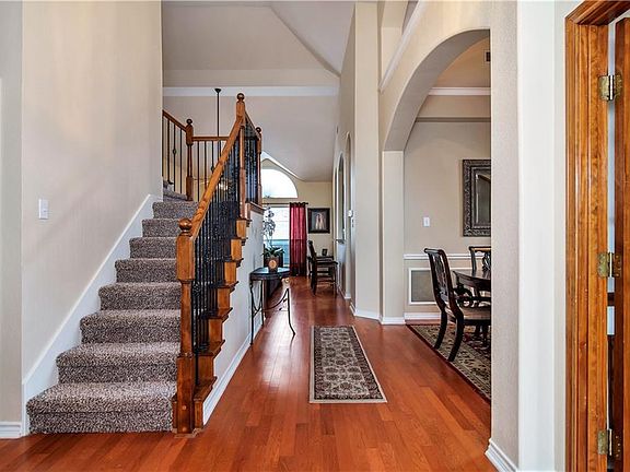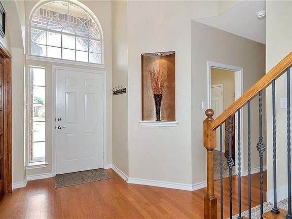 OPEN HOUSE, July 22 from 11-2. GORGEOUS HOME! Features stone accents, extended gar, 4 bdrms, 3 bath, study, formal dining rm, family rm, game rm, media rm, extra rm with builtn shelves, arched doorways, crown molding, art niches, wood floors, and new carpet and paint. Formal dining has wainscoting and plant ledges. Family rm has stone fireplace with gas logs, and wrought iron staircase. Kit has granite cntrtps, island, brkfst bar, gas cooktop, stainless steel appl, and slate tile backsplash. Master has sitting area, crown molding, recessed ceiling, dual sinks and vanities, garden tub, and sep tile shower. Media rm has wood floors, builtn bar with mini frig and wet bar. Walking distance to all schools and pool.