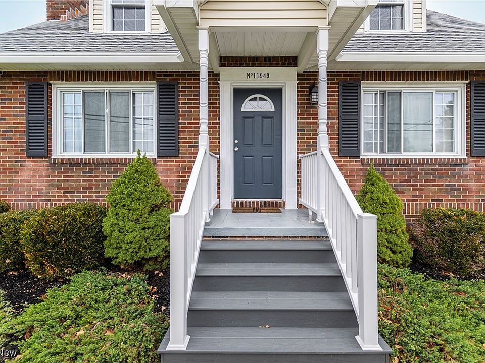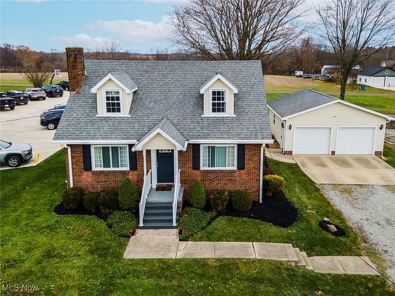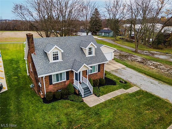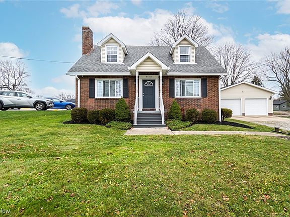 Welcome to this fantastic brick Cape Cod three bedroom/one and a half bath gem, nestled in the heart of Greenford! This rare find offers the perfect combination of character and modern upgrades in the South Range School District. The living room features a cozy gas fireplace and beautifully refinished hardwood floors flow throughout the home. Updates include newer windows and roof, paint, and light fixtures. Mechanical updates include a heat pump/AC in 2018, hot water tank in 2022 and updated electric including a 200 amp panel. The half bath on the main level has been renovated with a new vanity and toilet. The kitchen features soft close cabinetry and newer appliances. The first floor bedroom is currently set up with a washer and dryer for convenience but can easily be converted back to a bedroom or office space. Upstairs you'll find two bedrooms, each with multiple closets. The huge full bathroom features a vanity with double sinks and new toilet with vinyl flooring. The full basement provides another laundry option and tons of storage. The insulated two-car garage provides even more storage and parking options. The back patio offers peaceful views of the spacious backyard. All of this is located minutes from schools, nurseries, fruit farms, and more. Don't miss out on this move-in ready home in a great location!