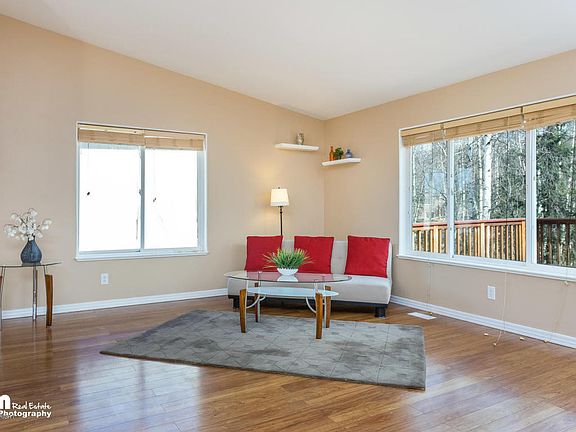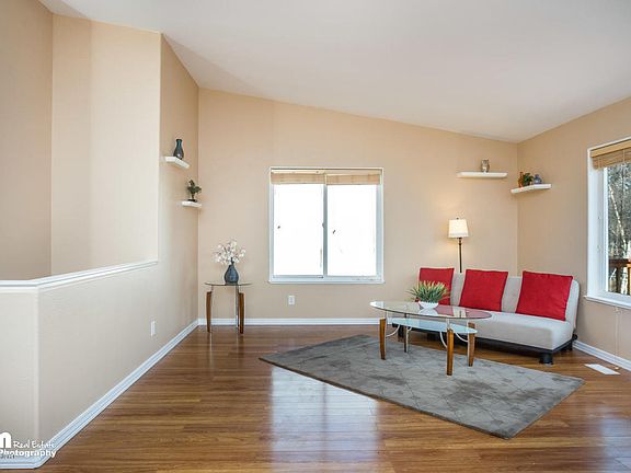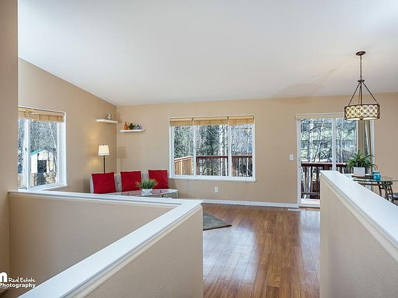 OPEN HOUSE 4/29 (1-4pm) Gorgeous townhouse in the heart of Eagle River! Freshly painted and brand new laminate flooring and carpet throughout. Open layout with vaulted ceilings plus tons of natural light with lots of window. Backs to a greenbelt! Huge deck overlooking private fenced backyard with extensive landscaping. Kitchen features solid surface counter tops and stainless steel appliances. Large master bedrooms with walk in closet plus bonus family room downstairs with a cozy fireplace! Very low dues, only $30 per month. Walking distance to the grocery store, park, school, and restaurants. This one is a must see!