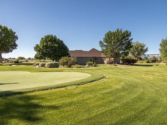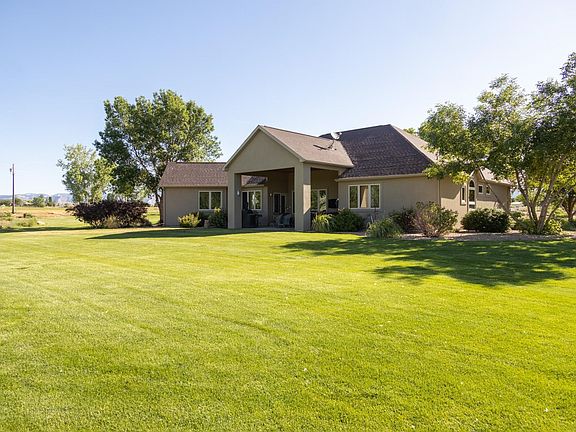 Wide Open Spaces in the buffer zone between Grand Junction and Fruita on Colorado’s Western Slope! This 2.36 acre property is beautiful, well maintained and, as the builder's personal residence, offers lots of fantastic amenities! Enjoy options to formally entertain in the living and formal dining room, or just hang out with an intimate group while enjoying the kitchen nook and den which are both adjacent to the well-appointed kitchen and spacious covered back patio. The public areas of the home are separate from the private areas, where two secondary bedrooms and a generous primary bedroom suite are located. The primary suite includes a space dedicated as a sitting or working area, with wonderful windows making you feel as though you can step right outside to the lawn and firepit with views of the Colorado National Monument beyond. The en-suite bathroom offers the luxury of in-floor radiant heat to help cozily begin the day. Wonderful woodworking exists throughout – tongue and groove ceilings in the back patio and den, an intricate walnut inlay at the entry compliments the maple floors, and alder doors and hickory cabinets are simply beautiful. A three-stall garage has an expanded area that includes a dog wash (YES!) and options for storage. The owners utilize the third bay as a wood working shop kept warm with a ceiling mounted natural gas heater. With a well thought-out design, the orientation of the home accentuates the beautiful vistas of the Bookcliffs, Colorado National Monument and Grand Mesa. Outside enjoy a pond, shared with the neighbor, and your own golf tee box and green! Impeccable. Well-planned. Ready for you to enjoy!