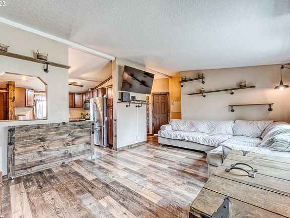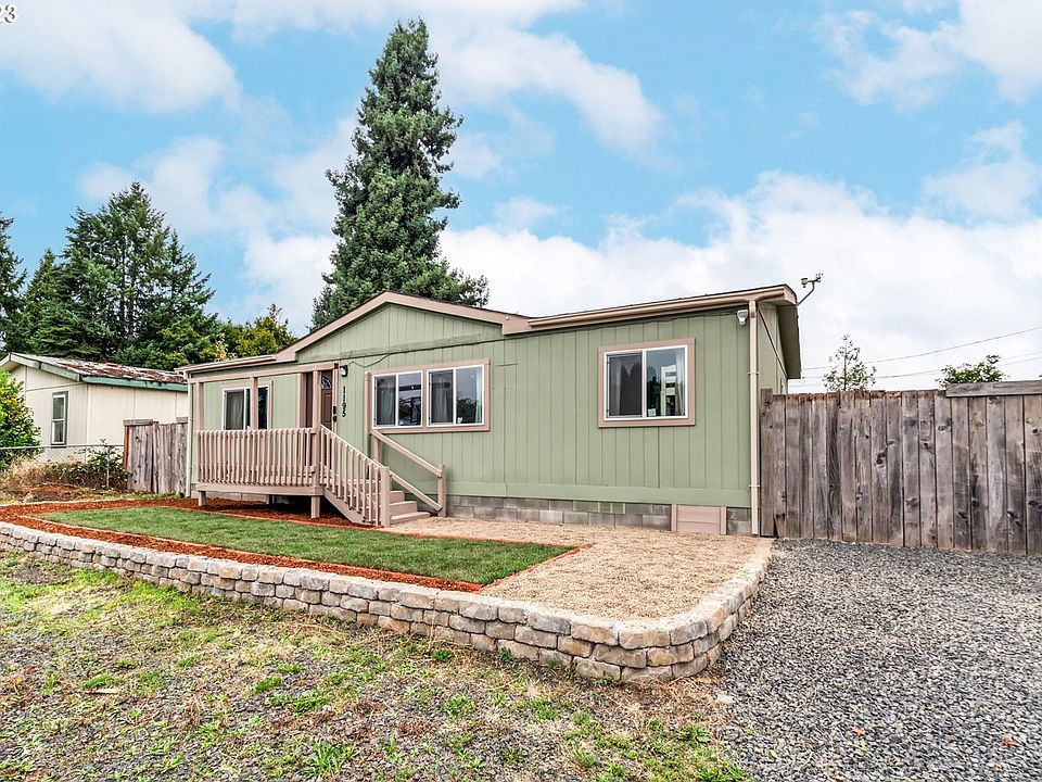 This spacious 3-bedroom, 2-bathroom manufactured home on it's own land offers an impressive 1120 SF of contemporary living space. The high ceilings create an airy ambiance, while the updated Pergo laminate flooring adds a touch of elegance & functionality to every room. Entertain effortlessly in the well-appointed kitchen, featuring ample countertop space w/ an island, eat-bar, built-in microwave and plenty of storage. Owner's bed w/ bath and walk-in shower. Separate utility room. As a bonus, step outside to your own private oasis where a large fenced backyard awaits, promising endless possibilities for outdoor gatherings, gardening, or simply enjoying some serene moments under the open sky. Plenty of room for RV parking. This home combines comfort, style, and functionality, making it the perfect haven for you and your family.