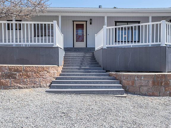 Beautiful 4 bedroom, 2 bathroom, nearly 2000 sq.ft. single story home w 1/2 acre corner lot w/RV parking & gorgeous mountain views. Handicap accessible w/ramps & grab bars. Huge 16x28 2 car garage w/room for an extra long vehicle. Front Trex type deck looks to incredible sunsets & mountain views. Rear 25x12 covered patio. 16x8 detached shed. 12" thick energy efficient walls. Huge family room w/gas fireplace & separate living room. Dream kitchen w/solid surface counters, 2 lazy susan's & all appliances., Large pantry, separate laundry room w/extra refrigerator. built-in ironing board. Storm glass doors on all doors. Formal dining room with crown molding. Breakfast nook just off kitchen. Well maintained home. The large covered patio has skylights and gas stub for BBQ. Large enough to host a huge event. The yard is very low maintenance w/drip systems, no grass but mature trees & bushes. Home began as a manufactured home but was completely enclosed with traditional construction making the walls all 12" thick and super energy efficient. All permits, plans and photos during construction are available to view upon request. Home is elevated above street level giving you great views of the surrounding mountains and valleys. The front manmade wood deck is very large and is shaded by a mature tree. Perfect place to enjoy an afternoon sunset. The yard is also fully fenced in chain-link allowing your animals the whole yard to roam. Never run out of hot water with the Bosch on demand hot water heater.