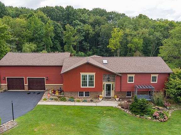 Custom-designed home with an outdoor oasis! Walking up to this MASSIVE home, you are able to see "million dollar" views expanding across the ridge. The pictures tell the story! The interior of the home has high-end finishes virtually everywhere you look. Gleaming hardwood flooring, high-end kitchen appliances, large bedrooms, a master with an en-suite, and a massive 3-season room are just some of the features on the main living level. The basement has a true mother-in-law suite set up. Equipped with large doorways for moving wheelchairs, a no-step shower, and a kitchen/living room combo. The basement also has another living space and a kitchen set up to service outdoor entertainment. The outdoor space is fabulous, with a pool, pool house, workshop, and entertainment area with a babbling brook in the back of the property. Good luck trying not to fall in love with this tranquil setting, a MUST see for yourself!