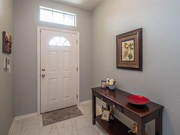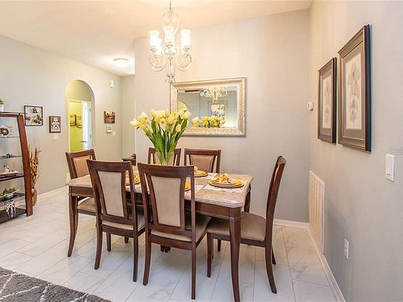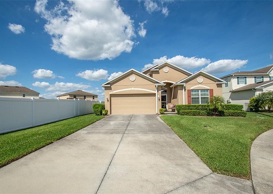 Come see this magnificently maintained home on a large cul-de-sac lot, with a ton of beautiful upgrades, it's better than new. This property features an open concept layout and large screened in patio, creating plenty of space for entertaining. The kitchen was recently renovated creating a large breakfast bar area, adding a new glass backsplash and installing quartz counter tops. There is plenty of storage in the upgraded 42" cabinets and pantry. The entire home was recently repainted and new tile was installed throughout the main living areas. The dining area and living room are combined creating a spacious area connected to the family room. The master bedroom is located in the rear of the home and features an attached en suite with a garden tub, dual vanity, and shower. The master closet has been outfitted with custom shelving. There are three secondary bedrooms. Two are located in the front of the home and one located in the back. The secondary bathroom has a shower tub combo and a vanity. This home is situated on one of the largest lots in the neighborhood, with an extended driveway and a lushly landscaped fenced backyard. Conveniently located close to I-4 getting to Tampa or Orlando is a breeze. The current owners have not spared any details on this home.