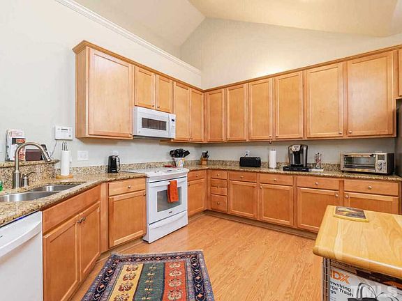 Gorgeous ranch villa! Peaceful end unit with ultra private fenced patio. Naturally lit through skylight, the kitchen offers granite countertops, tons of cabinet space including a extra large pantry. Storage room next to the laundry room offers even more space. Laundry room has convenient wash sink. Cathedral ceilings throughout make the home bright and open! Flex space allows for an office or cozy den AND a sun room with lots of versatility. Community offers pool, fitness room, bark park, and much more.