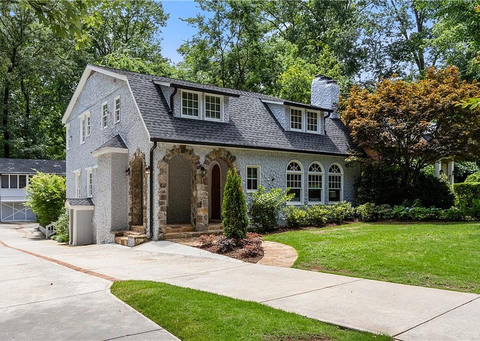 Tucked away on a quiet cul-de-sac in the heart of historic Druid Hills, and just moments from the vibrant energy of Virginia-Highland, this storybook bungalow blends timeless architecture with modern livability—and a rare income-producing opportunity. Arched stone entryways, steep dormered gables, and a classic whipped stucco façade create instant curb appeal, while an abundance of natural light pours through a series of arched Palladian windows into the elegant main living spaces. Inside, period details like wainscoting, coved arches, and a decorative plaster fireplace nod to the home’s architectural pedigree, while recently refreshed interiors include updated lighting and refinished hardwoods add a current, curated feel. The classic center-hall layout flows effortlessly from the sunlit living room into a formal dining space and bright white kitchen—updated with granite countertops, all new stainless appliances, and a picturesque sink framed by an oversized window with captivating leafy green views. A true standout feature is the fully-updated detached carriage house and garage with a private upstairs apartment. This 1BR/1BA ADU (Accessory Dwelling Unit) includes a screened porch, kitchen, living space, and expansive storage, making it ideal as an Airbnb, au pair suite, or for multigenerational living—complete with its own separate entrance. The carriage house was fully-updated with new exterior siding, new roof, new HVAC system, new appliances, refinished floors and upgraded plumbing. Unlike many homes of this era, the main residence offers impressively scaled bedrooms and a thoughtfully flowing layout designed for modern living. Two gracious guest rooms and a beautifully appointed hall bath are situated on the main level, while the upper level is devoted to a captivating owner’s retreat—complete with a private sitting room or office, a spacious spa- inspired bath with a soaking tub, walk-in shower, and double vanities, as well as an additional bedroom and full bath. On the terrace level, a finished flex space provides the perfect setting for a home gym, media lounge, or relaxed hangout area. Just outside, a newly constructed oversized deck invites effortless outdoor entertaining—whether hosting guests al fresco or enjoying quiet evenings under the trees with family and friends. Out back, the fully fenced yard is professionally landscaped with low-maintenance turf, creating a lush setting that’s as functional as it is beautiful. Downstairs, a finished basement flex space offers the perfect setting for a home gym, movie nights, or casual hangout zone, while a newly added oversized deck creates an ideal space for outdoor entertaining with family and friends. Have peace of mind knowing the roofs on both structures are brand new, there is a new HVAC system in the main house and a new sewer line connection. Set on an expansive, deep lot with a long private driveway and lush, mature landscaping, this move-in-ready residence offers walkable access to top-rated dining, shopping, parks, and schools—placing the best of intown living right at your doorstep. Ideally located just minutes from Emory, CHOA, the Atlanta BeltLine, and Midtown, and only 5–15 minutes to many of the city’s major employment hubs, this home delivers a rare combination of historic character, modern updates, and exceptional lifestyle flexibility—all in one of Atlanta’s most treasured neighborhoods.