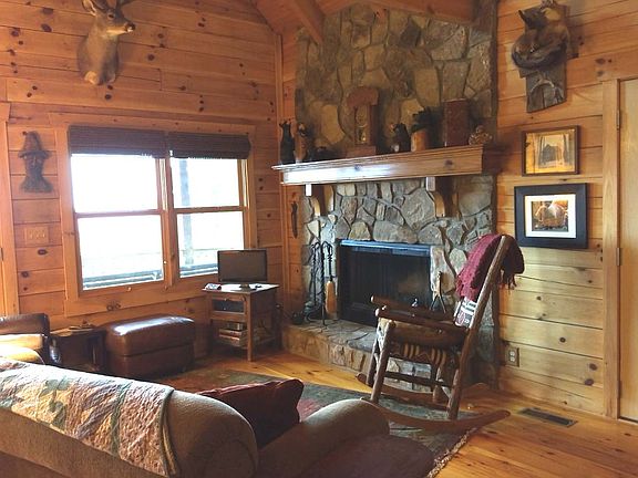 Fireside Log Home with one of the most AMAZING PANORAMIC VIEWS in No. Ga! This fully furnished, 3BR/2.5BA, tastefully appointed home has been featured in Log Home magazines. The beautiful stone fireplace would be the focal point if it wasn't for the view. A stainless/granite kitchen with farm sink & bar, wrap-around porches, full finished bsmt. w/pool table and large den, hot tub, generator, walking trail and more!!! The wall of windows allows you to enjoy the view from each floor. All this on 6.2 UNRESTRICTED acres!!! The perfect mountain getaway!