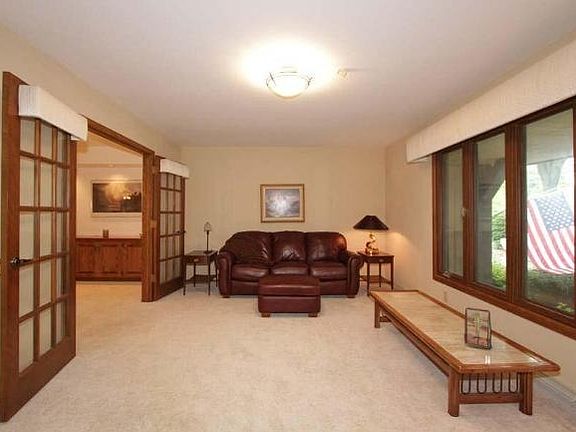 Lovely, meticulously maintained brick Ranch on a spectacular park-like setting with a great flowing floor plan. Exceptionally spacious living areas, dine-in cooks kitchen with granite counters, huge family room with handsome fireplace (California driftwood mantel surround) flanked by built-in bookcases. Updated master suite. Four-season sunroom features 2 sets of sliding doors that lead to patios surrounded by treed lot and gardens. First floor laundry. Finished rec room.