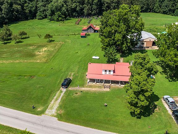 Looking for a family farm ?Here it is 29.7 acres with 2 homes a farm house and a double wide 3 water taps 3 septic systems 4 barns with electricity and water 2 sheds Fenced Pasture Creek, Timber on back side ,Orchard and 1080 Ft of Road frontage . Can be divided . This is a beautiful farm with lots of potential . Upper level of home can be finished for more sq ft . All personal items and animals to be removed .. SOLD AS IS