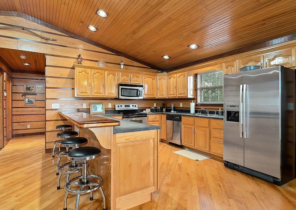 Dedicated office spaceCovered front porchStainless steel appliancesSpacious open floor planAsh wood wallsBack deckVaulted ceiling