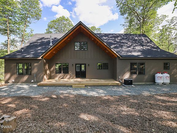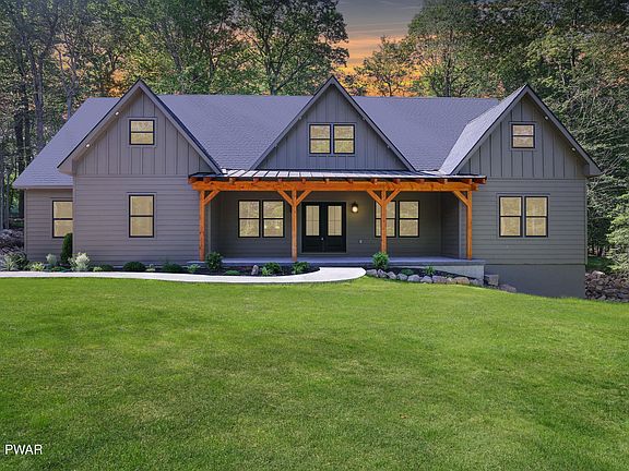 Property is Under Contract and considering back-up offers only at this time. Investment or Vacation Home! This Breckenridge-inspired home is Move In Ready, has 4,800 sqft home, and located in Short-Term Rental & Amenity Friendly Pocono Farms & backs up to a PGA-level Golf Course on the 18th Hole. For those, who don't know, Pocono Farms is known as ''the hidden gem'' with all of its amenities! See below info. for more!MAIN LEVEL (2,300 sqft) - Perfect for Multi-generations: 4 Spacious BR (Can sleep 12-14), 3.5 Baths, Open Concept Kitchen w/Expansive Quartz Island w/plenty of Seating & adjacent area can accommodate a Large Dining Table, Beverage/Breakfast Bar, Pantry, Cooktop Island, Lots of Cabinetry! Family Room has a 9' Stone Linear Fireplace. LOWER LEVEL (1,500 sqft): Is finished and includes a full bath and storage space. Perfect for Media Room, Game Room, Bedroom, etc.UPPER LEVEL (1,000 sqft): Open Palette for finishing & rough plumbed for additional bathrooms.DECK is 10'x30' - Enjoy Grilling & Entertaining. Looking for a hot tub? The deck has wiring in place to hook one up!FRONT PORCH: Imagine relaxing with your morning coffee or afternoon beverage on this inviting Adirondack style front porch.Walk to all the amenities: Golf, Beach, Lake, Pool, Pickle Ball/Tennis Courts, Bar & Grille (enjoy a drink and/or lunch/dinner), Fitness Center. Activities abound for all age groups!