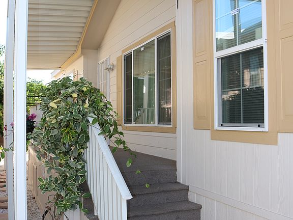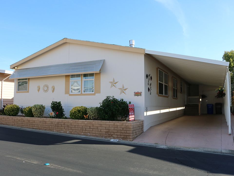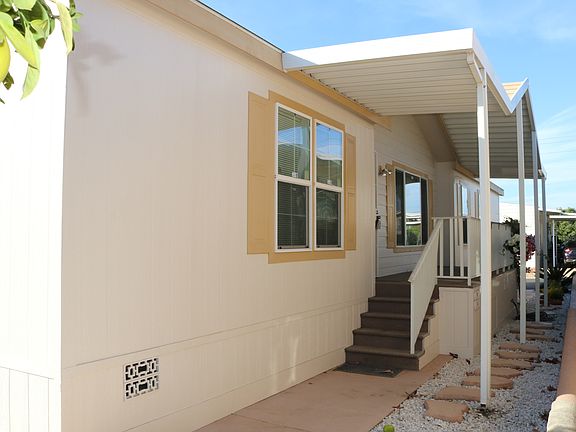 Location, Location, Location!! This home is perfectly situated in the peaceful 55+ park of Casitas Del Amigos. This is a well-maintained land owned park with LOW HOA fees. Located near 2 shopping centers and easy freeway access without the noise. Large 3 bedroom 2 full bath newly built home boosts pride of ownership throughout. Recently painted exterior, wide ramp, and mature fruit trees in the back will have you begging to see more. Inside has multiple skylights, ceiling fans in almost