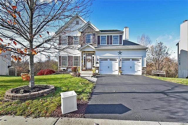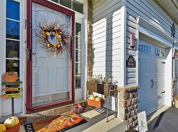 PANORAMIC VIEWS. TRANQUILITY. CONVENIENCE. This single-owner Zawarski built home with a beautiful stone-facade, offers 4BRs, 2.5 BAs, a 2-car garage w/ elegant carriage house doors newly installed & a walk-out basement. Featuring countless upgrades including stone hardscaping in front & a paver walkway; hardwood flooring in the foyer through to the KT; transom windows providing abundant natural light over the sliding doors in the KT, in the DR & the family room; elegant French doors; a tray ceiling in the MSTR BR w/ ceiling fan; gas FP in FR; 42" extra tall maple KT cabinetry w/ granite counters, tile backsplash, & breakfast room off the kitchen! Appreciate outdoor living space for dining, relaxing & entertaining, including the pressure treated deck w/ tranquil scenery in a peaceful setting. This impeccable home w/ a central location provides that dream home feel. Call today to preview this unique property!