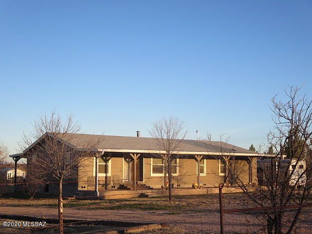3 bedroom 2 bathroom 2008 Cavco Manufactured Home on 4.78 fenced acres with full length porches on the east and west sides to enjoy the mountain views.The home has upgraded granite counter tops and large kitchen island, high end laminate and 20' square tile flooring in the living areas and carpet in 2 of the bedrooms. The property has a mare motel set up for 4 horses, an R/V Barn that is 30' deep, concrete block bunker built into the hill currently used for hay storage that fits 64 bales and misc. other structures for parking and storage. Private well. Conveniently located 3 miles from downtown Benson off Hwy 80. Owner/Agent.