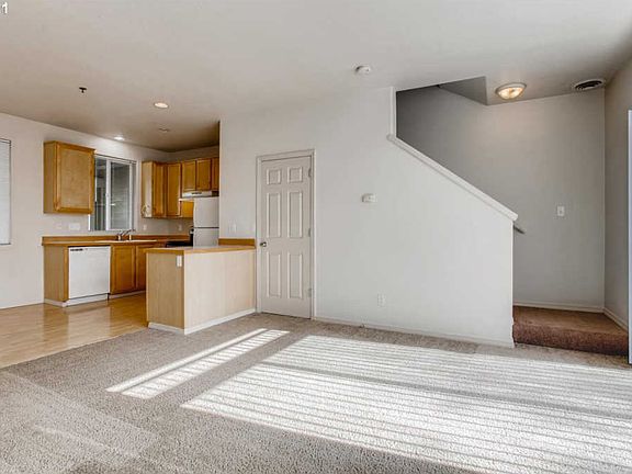Spacious & move in ready 2-level end unit condo! Great room main level is bright & inviting featuring laminate floors in kitchen & carpet in living area. Slider to fenced back patio w/ no neighbors behind unit adds extra privacy. Upstairs, two spacious vaulted bedrooms & hall bathroom. Master bedroom features ceiling fan & private bathroom. Washer/dryer also included. Fantastic location near Streets of Tanasbourne Mall, Max Station, & Whole Foods. Also convenient to Nike & Intel!