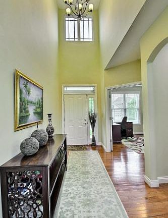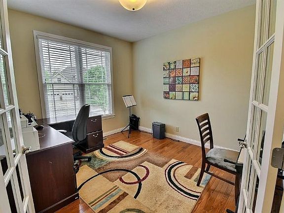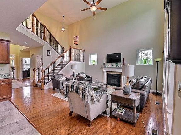 Beautiful 4 Bedroom 3.5 bath home with a full basement on one of the largest lots in The Orchard. Sitting on a tree lined lot of .81 acres this home has so much to offer. The main level features a two story living room with expansive windows and a gas log fireplace. The kitchen is open concept to living and dining areas and features granite counters with a large island. The first floor master suite includes a walk in tiled shower and garden tub. The main level also features a office and hardwood floors. The second story has 3 additional good sized bedrooms. The basement has a huge finished 45 by 16 family room, a full bathroom, and an additional 3 large unfinished rooms that could be finished to suit. Located close to Purdue and easy access to new 231.