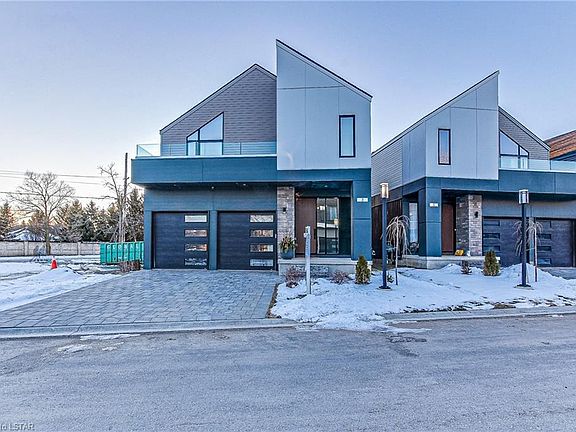 This contemporary vacant land condo is impressive! Located on a highly sought after West London cul-de-sac off Riverside Drive, walking distance to Springbank Park. Large expansive windows, high ceilings and tons of natural light. Well over $100,000 in upgrades in this home! The kitchen is a contemporary design with an extra large island and dining area, great for entertaining. Top of the line appliances, including a wine fridge and gas stove. A nice walk in pantry, and upgraded mudroom/laundry room, extra closets, including a walk in coat closet for lots of storage and easy organization. Blinds in the main living area are all remote operation. Upgraded luxury vinyl plank flooring throughout. Backyard is fully fenced and features a composite deck with privacy wall and beautiful hot tub. Upstairs features a grand master suite with balcony, ensuite, walk in closet with closet organizers, floor to ceiling concrete fireplace and a quiet sitting area, office or gym area. Two more good sized bedrooms and a full bathroom gives lots of space for a family or guests. The basement is almost complete, upgraded to 9' ceilings, it is drywalled and electrical is run, luxury vinyl flooring is on site ready for install. This home is a 10 and priced under replacement value. Don't miss out!