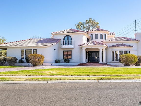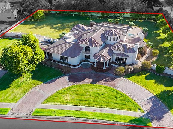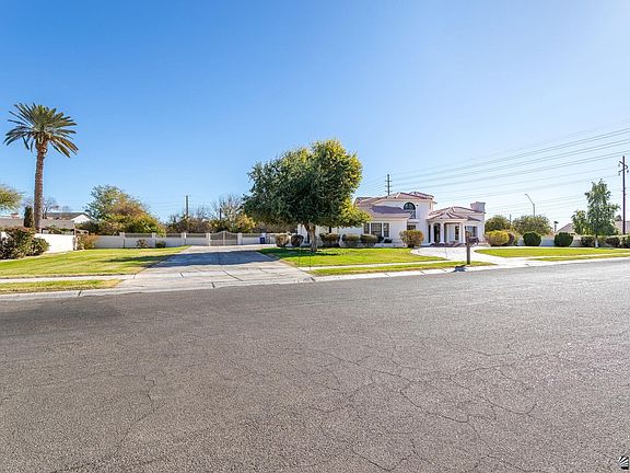 Discover the epitome of elegance in this sprawling 6 bedroom Estate, perfectly blending timeless sophistication with modern comfort. Through the beautiful double door entrance, step into a dramatic foyer with soaring ceilings and abundant natural light. The grand staircase will welcome you up to a loft with beautiful views of the backyard through double french doors on one end, and a hallway leading to 3 ample size bedrooms, all with bathroom access. Two bedrooms can be found in the main floor, including the master suite, and the 6th bedroom can be found in the lower level along with its own bathroom and additional living area. This unique property is nestled on a corner, full acre of green landscape and lush citrus trees. It offers a serene retreat while conveniently located within the City in one of Yuma's most beautiful streets, lined with custom homes just like itself. Backyard also features a large, sparkling swimming pool, BBQ area, and outdoor shower. Parking features include a large 3 car garage, a grand half moon drive-way, and an oversized additional driveway on the north side of the house that leads up to double gates. Take your own tour through this unique mansion, and fall in love.