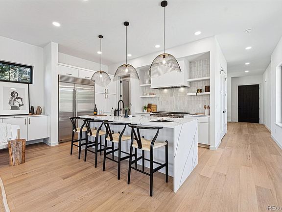 Striking Modern Masterpiece in Cory Merrill. This remarkable home, wrapped in brick with sleek lines and expansive windows, offers an inviting first impression with its sophisticated blend of materials and open-concept living spaces filled with natural light and complemented by high ceilings and a state-of-the-art chef's kitchen. The kitchen, a culinary dream, features high-end stainless steel appliances, sleek cabinetry, and a large island perfect for casual dining or entertaining, seamlessly flowing into the living room and backyard. A south-facing courtyard connects the office and dining room, providing a private outdoor retreat ideal for entertaining or unwinding. The primary suite serves as a peaceful escape, complete with large windows, a walk-in closet, and a spa-like en-suite bathroom boasting a freestanding tub, double vanities, and a spacious glass-enclosed shower. The fully finished basement expands your living options, whether you envision a home theater, gym, or additional living space. Located just minutes from Cherry Creek, Wash Park, the shops and restaurants of Old South Gaylord, and easy access to downtown, the Denver Tech Center, and the Rocky Mountains. This home truly offers the best of Denver living. Experience it for yourself today.