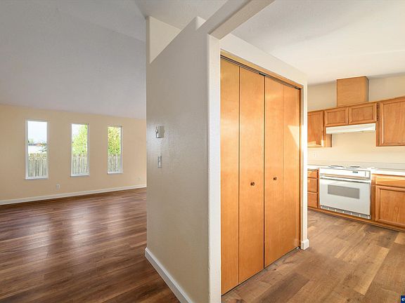 Starting out or sizing down, this home has you covered! A vaulted modified great room style features a dining area w/slider to the backyard. LVP in '22-'23, new baseboard & interior paint throughout! Roof in '16, water heater '21. East facing kitchen features a wall pantry, dishwasher, garbage disposal & eating counter. Fully fenced backyard. XL double car garage w/plenty of parking for 2 plus room for a tool bench, freezers, etc.! Great location, just minutes from 99W and schools!