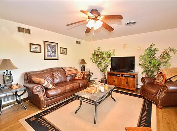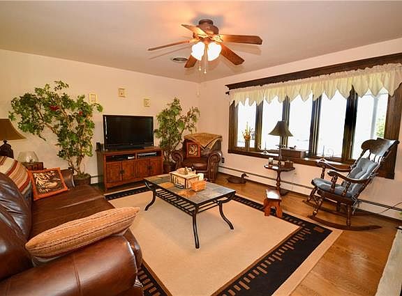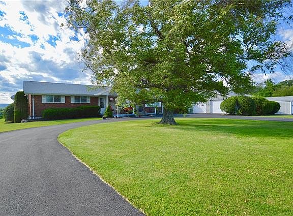 Immaculate 4 bedroom, 2 bathroom brick ranch with unbelievable panoramic views. The home sits on a pristinely landscaped acre, with mature trees and manicured bushes, and is surrounded by hundreds of acres of preserved farmland. Ceramic tiled flooring from foyer through the dining room and into the kitchen. The breakfast area in the kitchen overlooks the Appalachian mountain range. Living room has hardwood flooring and a stone hearth propane fireplace that is exposed on all sides for an elegant touch. The 3rd bedroom leads to sun room and is currently being used as an office; would make a perfect in-law suite or 1st floor family room. The finished basement has a bar, family room and the 4th bedroom, additionally there is room to expand the living space. The home is welcoming with a horseshoe driveway, detached 2 car garage and 4 storage sheds which would make great workshops, hunting storage or a playhouse. Proximity to I80 is just a few miles away.
