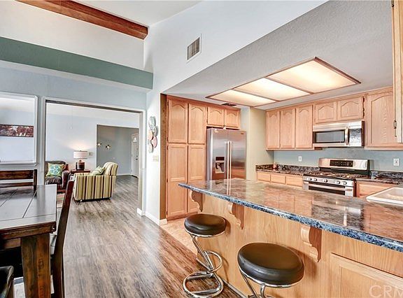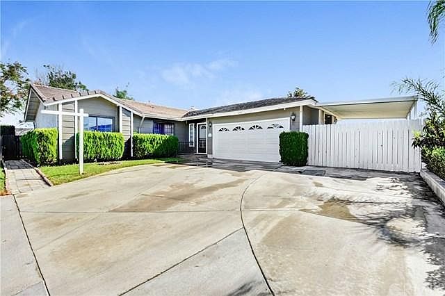 Wonderful Sierra Heights home, HOA covers water! Great location, quiet neighborhood with quick freeway access. Nearby Riverwalk, just one-off ramp away from Corona and near the Tyler Mall. Nestled in a quiet corner of the tract with a huge driveway and carport for additional RV parking plus 2 car garage. Home has been recently painted and flowing nicely with distress laminate floors throughout. You will fall in love this bright and airy home with high ceilings. Home Features: 3 bedrooms, 2 full baths plus a family room addition, generous size kitchen with breakfast bar, open to the family room as well. Perfect for family gatherings! The dining area has a nice fireplace and it adjoins a good size living room. Plenty of room for relaxation or play. The master bedroom features a vaulted ceiling, dual sink master bathroom and a sliding door to a private porch making for a light and bright private retreat. Check out the private easy maintenance yard with fruit trees, sitting on almost 8,000 sq ft lot. Riverwalk Pkwy has a beautiful walking trail and there is a dog park just down the street from the house. Look no more this home is the perfect starter home.