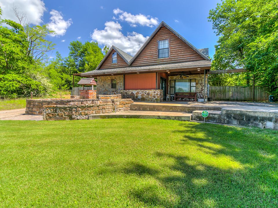 Super well cared for home in the Choctaw school district! This home has been been filled will love and memories. Walking in, you're welcomed with a beautiful entry way and a step down living room with incredible wood beam ceilings with a cozy feel. Kitchen has lofted ceilings tons of room. This home features 2 downstairs bedroom with an additional hallway theatre room that can also be used as a bedroom. Downstairs hallway bathroom is sizable, doubling as a laundry room. Heading upstairs, you will be greeted with beautiful repurposed wood floors and ceiling in your large master bedroom. Bedroom gives you size enough for a flex area or second living area. Master bedroom also gives you access to a private balcony overlooking your backyard and 30x30 insulated outbuilding. Your master closet is large and gives you through-access to a small bonus room, perfect for a nursery. Your garage features separate OG&E service with a 220 panel. Enjoy!