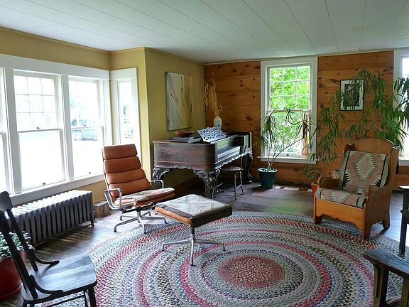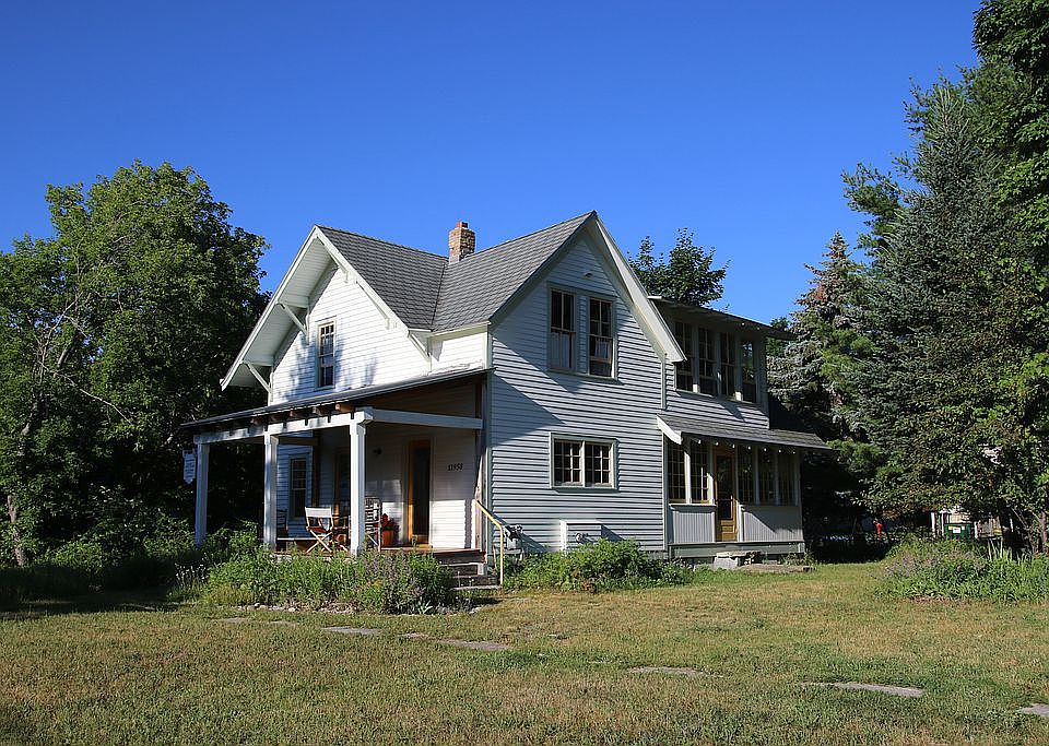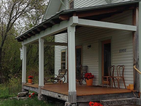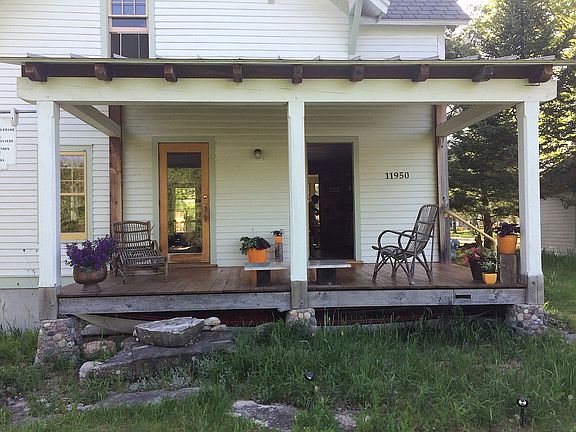 This house is no longer available. Best wishes on your real estate ventures. Fifteen years ago the charming Johnson/Beck farmhouse was moved from within the Sleeping Bear Dune National Lakeshore into the historic village of Empire. The house was set on a new poured concrete foundation and a new timber frame porch was added on the east side. In addition to the new front porch, it has a living room and sitting room/parlor sharing a long south facing bay window, separated by a pair of pocket doors. The house has a restored enclosed porch to the north with a sleeping porch above it. New plumbing, wiring, insulation and a zoned hot water heating system were also installed at that time. Some interior walls feature new true pigmented plaster--although limited remnants of the original plaster and historical wall paper were left as an historical record. The exterior wood trim and clapboard siding has been lovingly restored and painted. The walk-out basement is now a rental apartment, complete with its separate glass door entry, toasty warm and quiet in-floor radiant heat, a kitchenette and bathroom. The house has great fung-shui. The east half is the original 1890's portion of the house. The west half was built in the 1920's. The house has hardwood maple floors. The windows are mostly original single pane units with old fashioned storm windows--except for the second bathroom which has new custom storm windows which install from the inside. Empire was an historic lumber town, a mile square, established along Lake Michigan. The beach is a short walk west from this house; the National Park is 2 blocks south. This is an historic house with a rental apartment and a detached garage, being sold 'as is'. Viewings by appointment.