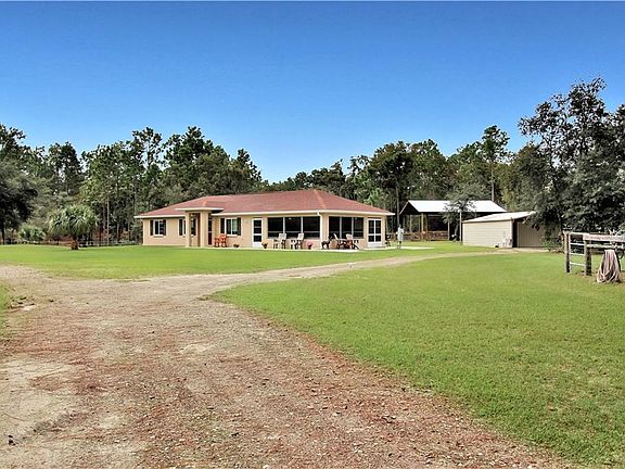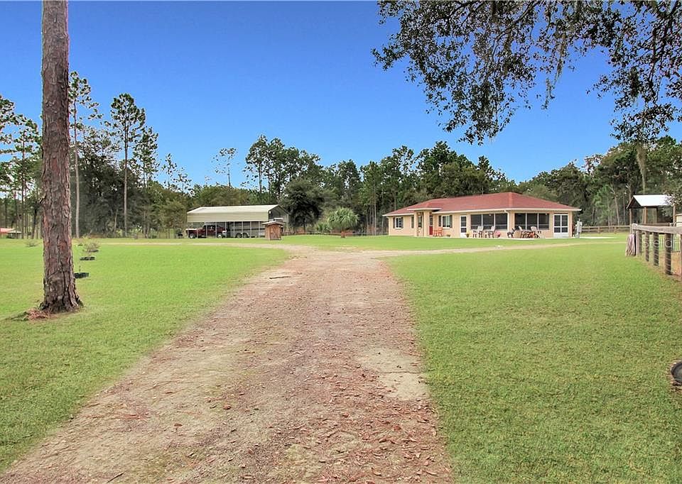Welcome to one of the cutest, well maintained mini farms in Whispering Pines! This farm has so many great features and amenities starting with the meticulously maintained 2-bedroom 2 bath cottage home. This home was built in 2018, features 1600 total square feet and a split floor plan, a spacious living & dining area with French doors that lead out to a screened patio, plenty of storage, wired for a generator, natural light throughout, the kitchen has ample cabinets & counterspace with a breakfast bar, an inside laundry, and one of the best features.. a large screened in lanai with triple fans, triple pane sliding windows and plenty of room to entertain, this lanai will not disappoint whether it's just for relaxing after a long day or having your family and friends over to watch the game! Now as we step out of any of the 5 doors leading to the outside, you can take in the beauty of the 5.16-acre property. This property is complete fenced and ready for your animals including 2 pastures and 3 paddocks with water set up to all of them. The several buildings on the property include a detached 24X40 carport with electric including 30 amp, a 24X36 enclosed metal building for equipment with a 12 foot enclosed extension for your tools or a workshop with water & electric and A/C, and a 32X36 hay barn also with water & electric. Now you ask...how can it get any better? Do you like trail riding? Well you can get on your horse or your buggy and ride for miles. As you leave the property you can take a right and go through miles of trails or go left and head right into the Goethe Forest. It doesn't get any better than that! This property is located less than 15 miles to Williston, less than 20 miles to Dunnellon, 26 miles to WEC, 18 miles to the HITS showgrounds and 29 miles to the Gulf of Mexico. The location couldn't be any better if you are looking for quiet country living but still close to all the amenities!