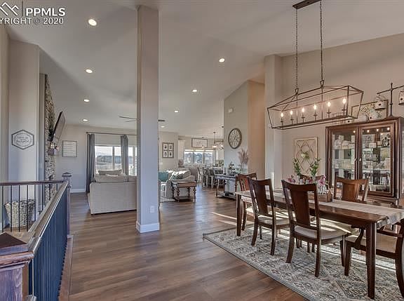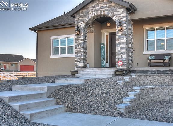 Absolutely stunning custom built on 2.5 acres. Country living at its finest with this immaculate home. High majestic ceilings throughout. Enjoy the Pikes Peak views from your composite deck, living room or from many other rooms in the home to include the master bedroom, kitchen and two other bedrooms as well as the office and lower rec room. Office in basement is conforming and could be used as a 6th bedroom. Walkout basement offers plenty of daylight in the entire basement. Granite counters in this gourmet kitchen with large island, double oven and large walk in pantry w barn doors and plenty of storage space. Amazing and large master bathroom with huge walk in shower double vanity and walk in closet. Jack and Jill bathrooms with private vanities for each room to connect the 2 bedrooms on the main and the 2 bedrooms in the basement. Oversized attached garage fits 4 cars plus RV w plenty of shelving already in place. Home also features a bonus safe room with a heavy vault door. Don't miss this unique custom home!!!