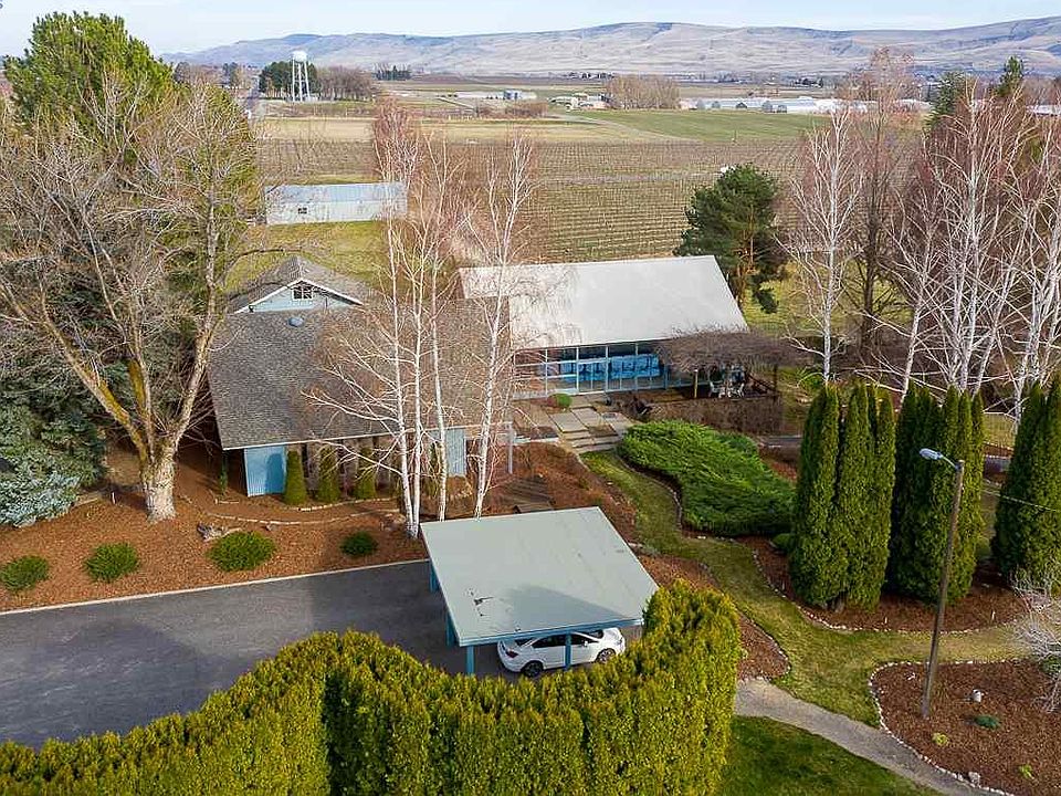 LOVE THIS HOME? TAKE A VIRTUAL 3D TOUR FROM THE COMFORT OF YOUR OWN HOME! JUST LOOK FOR THE "VIRTUAL TOUR LINK" NEAR PHOTO (FOR ZILLOW, CHECK AMENITIES LIST FOR LINK). Perfect country property with stunning views of the Horse Heaven Hills, 1.54 acres, beautiful mature landscaping, and enclosed in ground pool! Spacious 3 BR 3 BA home boasts timeless style with the soaring cedar tongue and groove ceilings, ample natural light, and fantastic layout. Formal living room with office nook, large family room off kitchen, plus sunken sitting area for gathering around the gorgeous stone fireplace (propane)! Expansive kitchen and dining area with tile floors, Corian countertops, dining bar with secondary sink, prep island, Jenn-Air range/oven plus built-in oven, and 8x6 butler pantry! Loft-style rec room perfect for game room/workout area/flex space. Private master suite with double closets and large en suite bath. Large secondary bedrooms on upper level with extra closet space, full bath, and pull down access stairs to bonus attic room--perfect for even more extra storage! Do you love to entertain family and friends? This property offers 56x38 enclosed pool building with propane heated in ground pool! Gorgeous yard with mature landscaping/shade trees, gazebo, covered decks for enjoying the peaceful surroundings and gorgeous views, basketball court, and detached shed divided into workshop space and finished flex space with cabinets, sink and extra storage. All this plus senior water rights--This is a MUST SEE property--call for your private showing today.