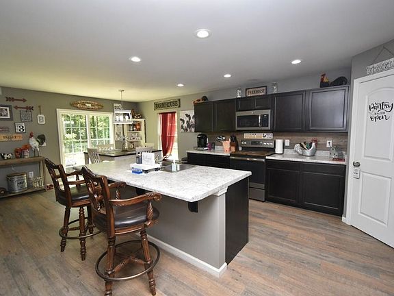 You have just found your next home. 11951 Burlington Rd. offers 1517 SF w/ 3BR/2Baths all on one level. Expand the home to 1870 SF with the unfinished walk-up 2nd floor (333 SF). This 4.22 Acres lot offers wooded privacy, a field of dreams for the kids to play on, a fenced yard, and a long private driveway & the chickens love it here!! Open concept w/Kitchen overlooking Living RM, Dining Area, Foyer, & private rear yard. Large Master Suite with w/private bath/oversized walk-in shower, double vanity, & walk-in closet with a custom setup. Split bedroom for kids & guests. Low maintenance vinyl siding exterior, Trane HVAC, & updated laminate flooring in the foyer, kitchen, and dining area.