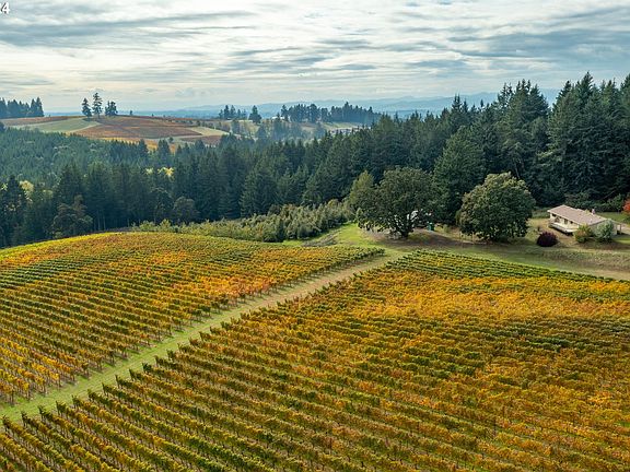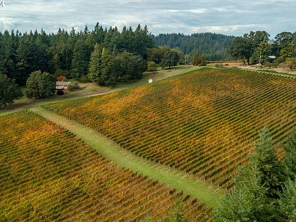 Mature Pinot Noir grapes, approximately 11.5 acres consistently producing wines with over 90 points Wine Spectator. Second well with water rights for irrigation. Truffle inoculated English Oak Trees as well as various fruit trees. Large outbuilding. Fenced and cross fenced. Beautiful views, private location and well cared for home. Second entrance off Hendricks Road at bottom of property. Close to town, up the hill from Lemelson Vineyards.